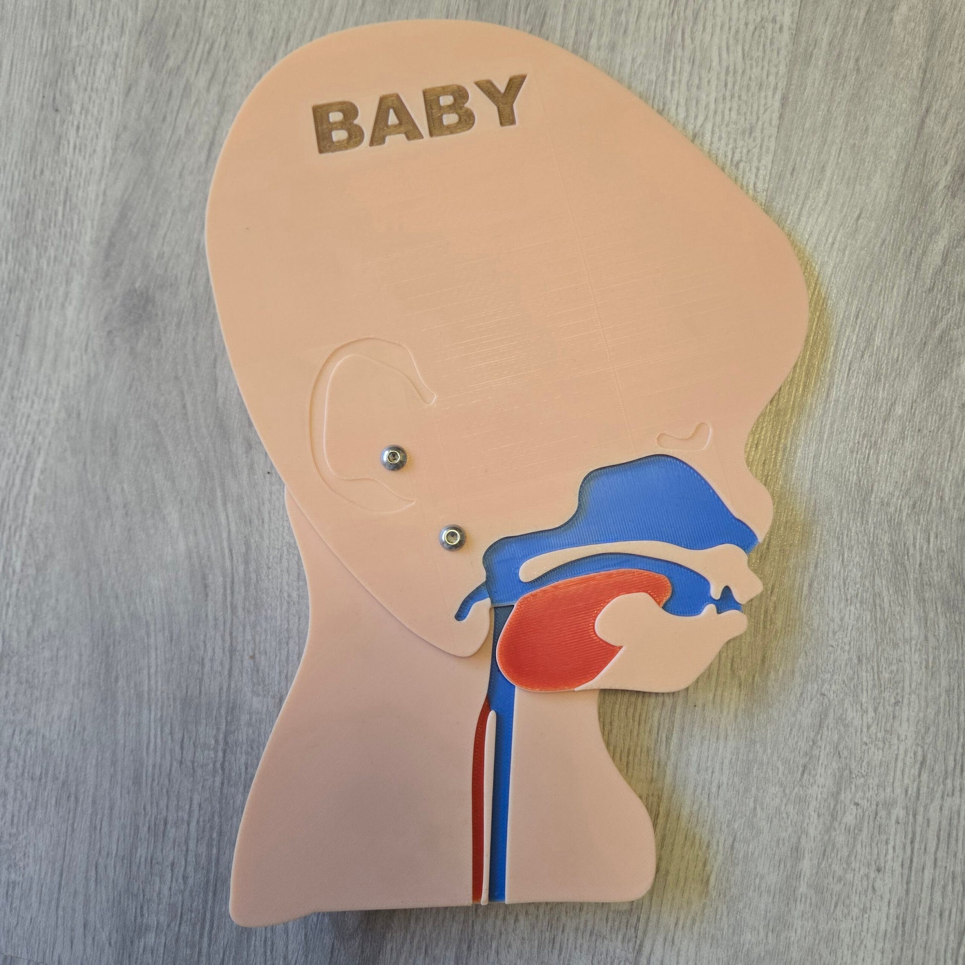 Diese detaillierten anatomischen Modelle zeigen die oberen Atemwege im Querschnitt – vom Baby über das Kind bis hin zu erwachsenen Modellen von Mann und Frau.