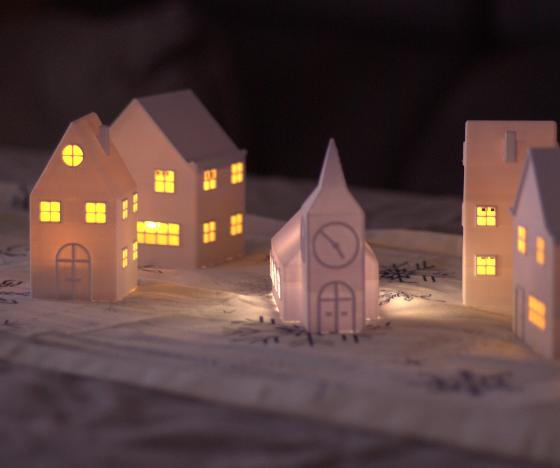 Jedes Häuschen und die Kirche werden hochwertig aus PLA gefertigt und können individuell beleuchtet werden – mit einer warmen LED entsteht ein wunderschöner Lichteffekt, der besonders in der Abenddämmerung zur Geltung kommt.