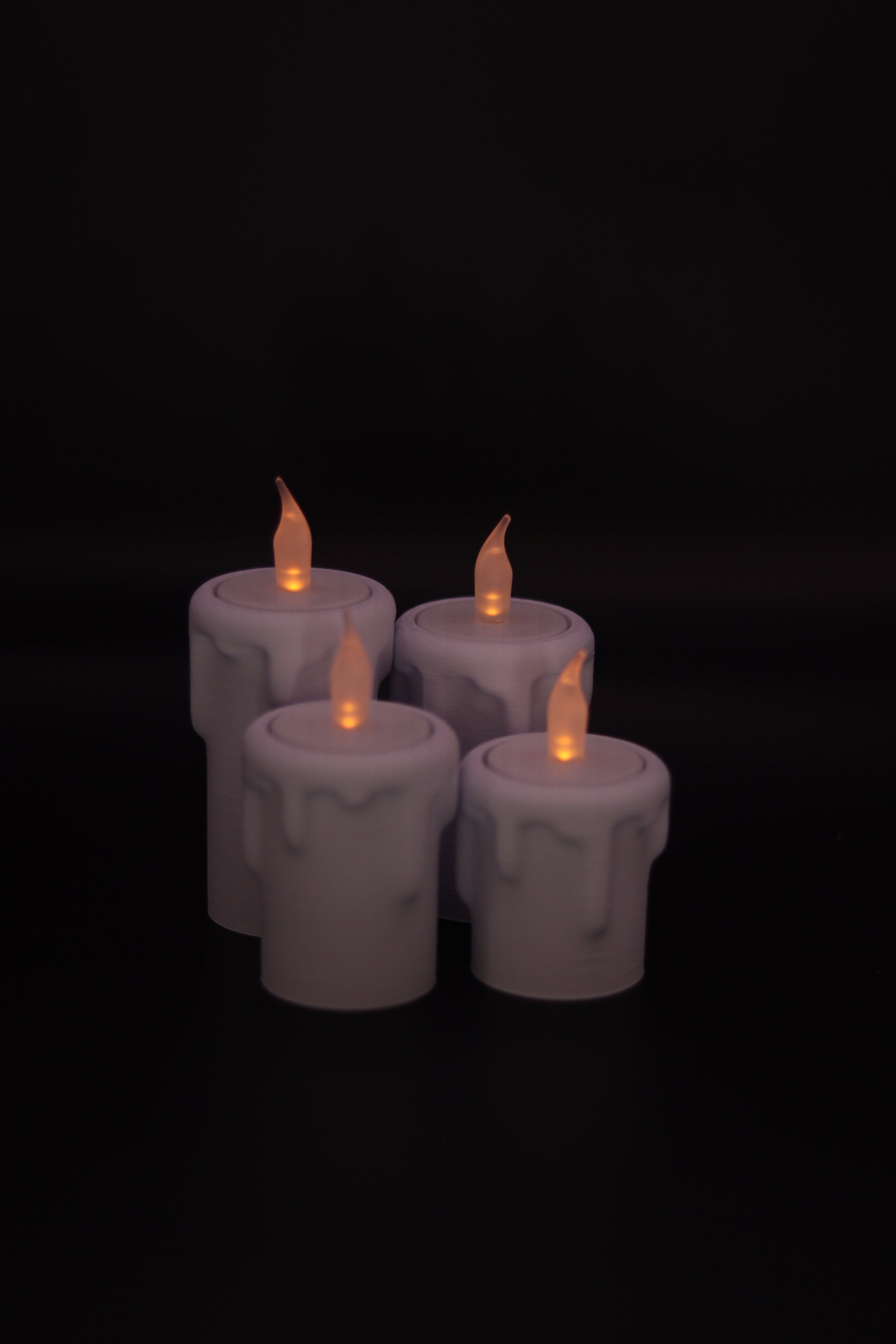 3D-gedruckte LED-Kerze aus PLA – festliche Weihnachtsdekoration im 4er-Set